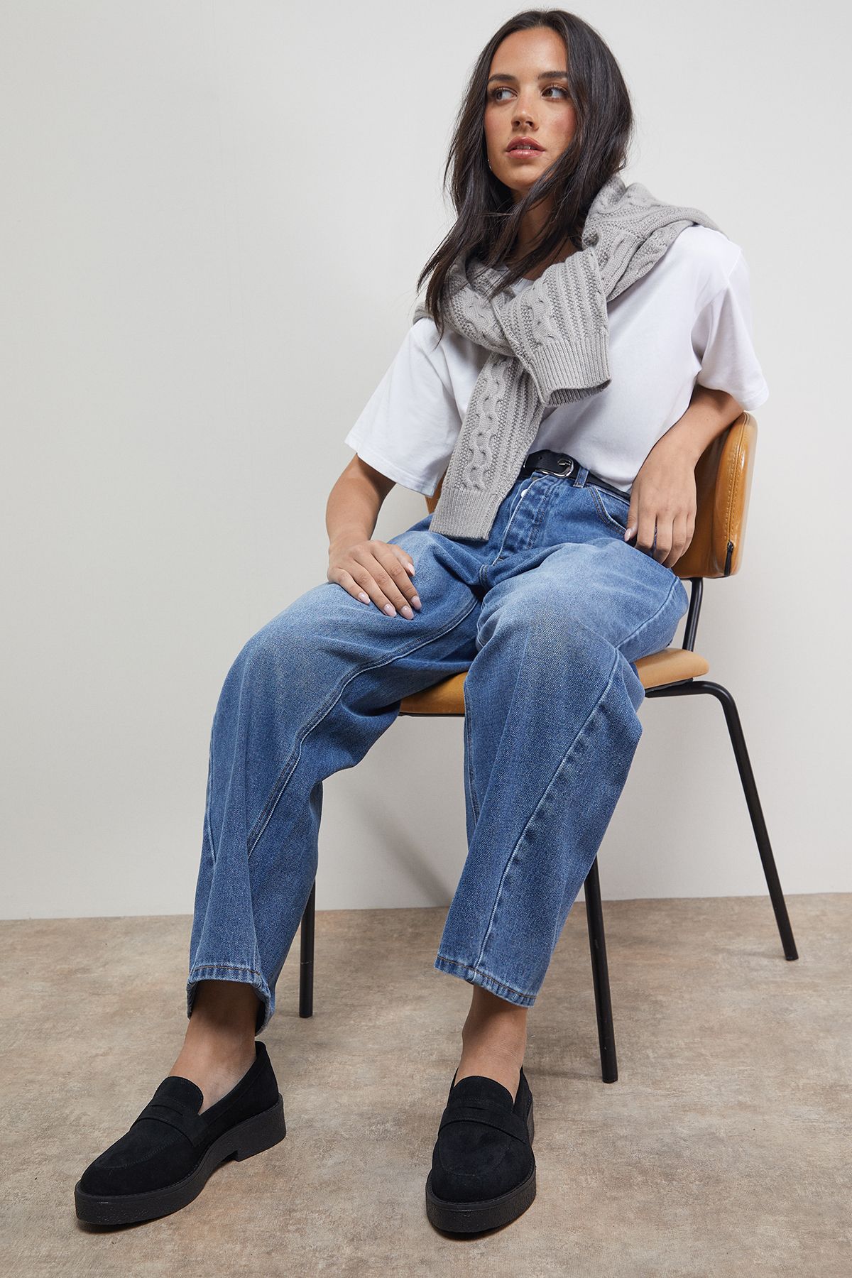 Oasis Kendra Faux Suede Chunky Penny Loafers Natural Black