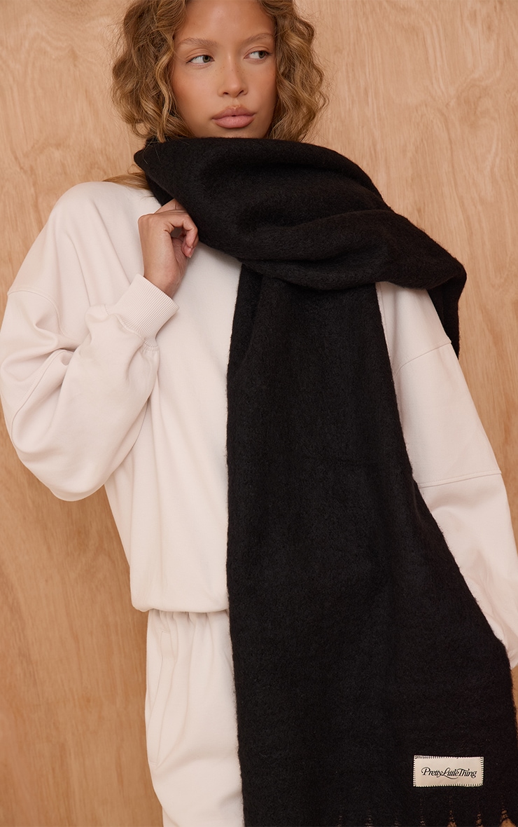 Black Logo Blanket Tassel Scarf