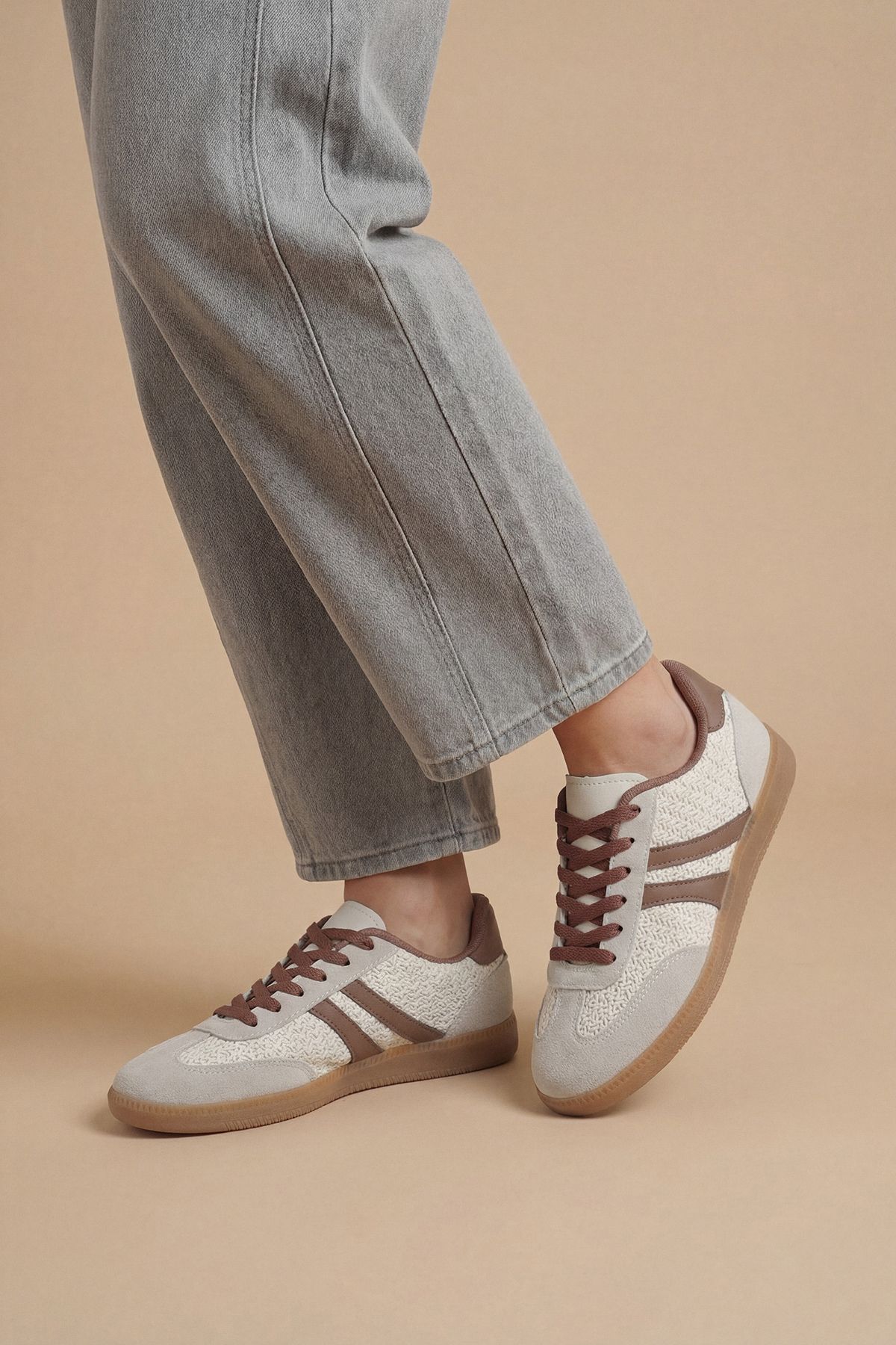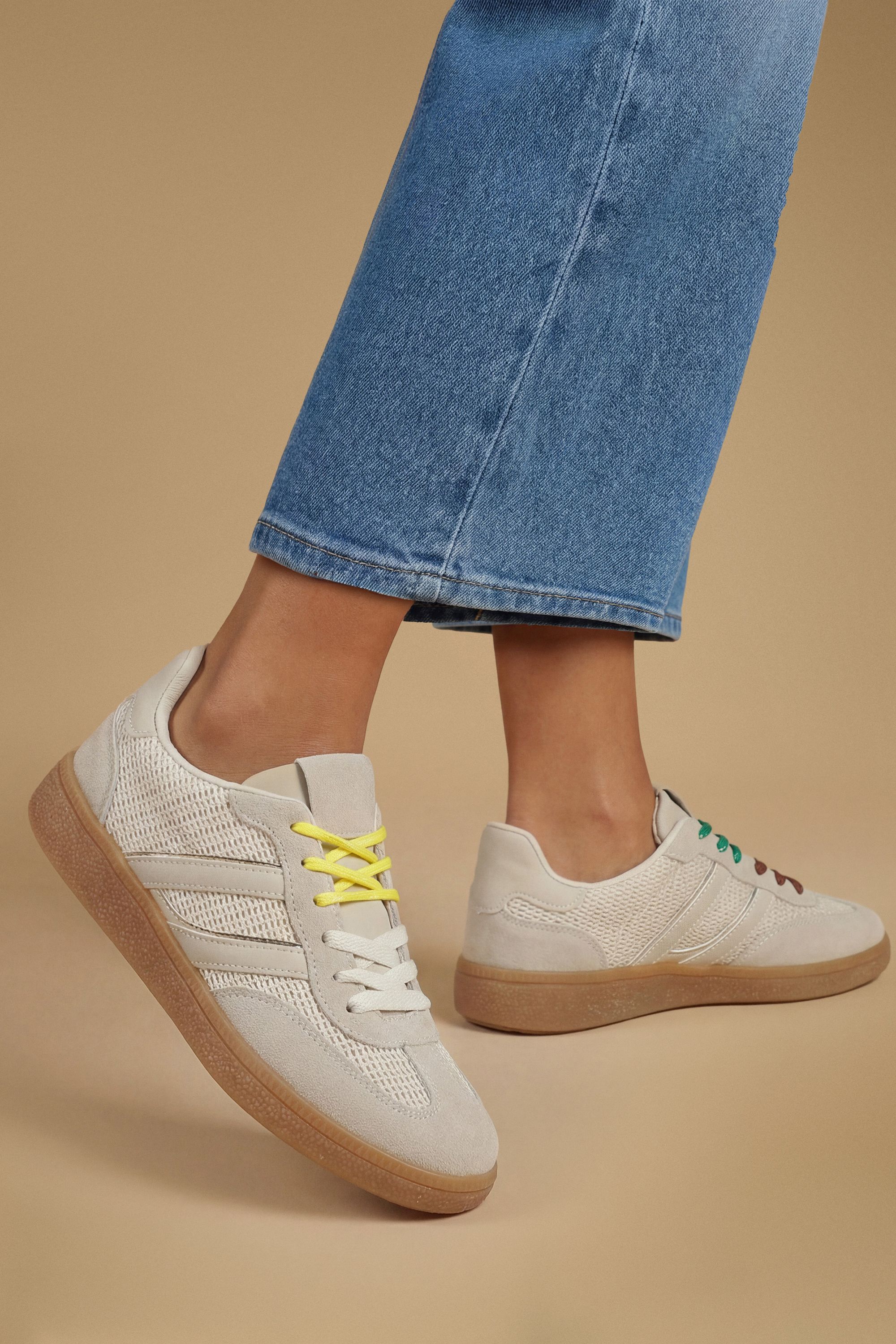 Dorothy Perkins Jackie Faux Suede Striped Lace Up Trainers Cream