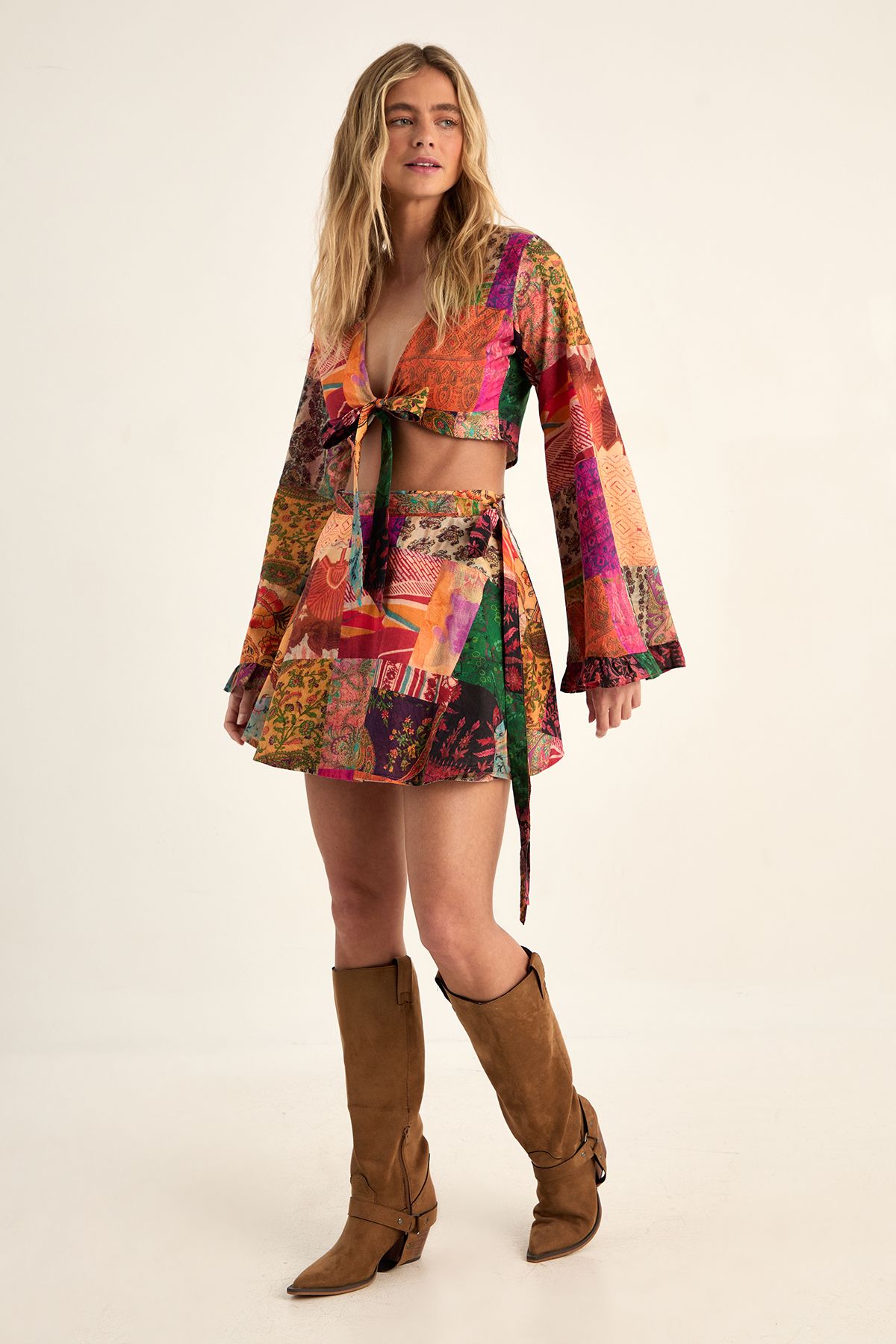 NastyGal Cotton Patchwork Wrap Mini Skirt Multi