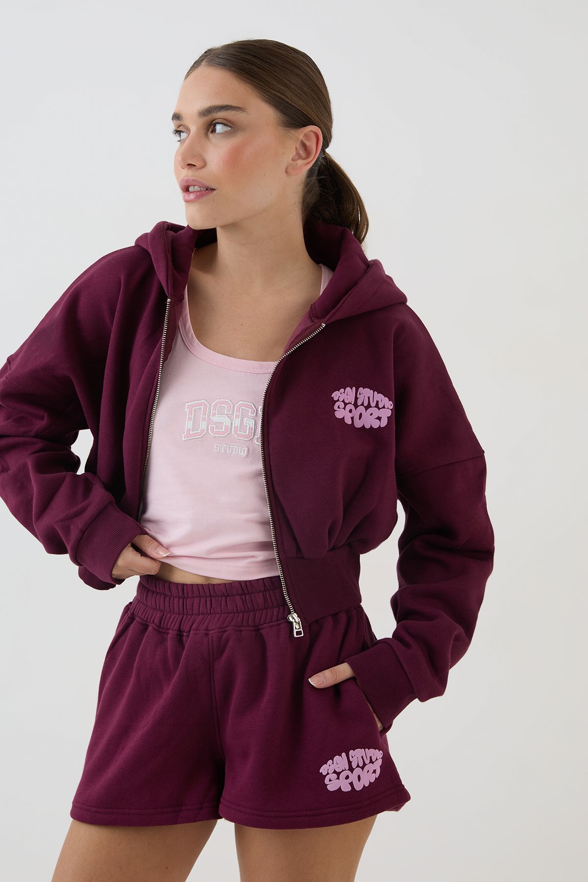 DSGN Studio DSGN Studio Bubble Loose Fit Sweat Short Plum