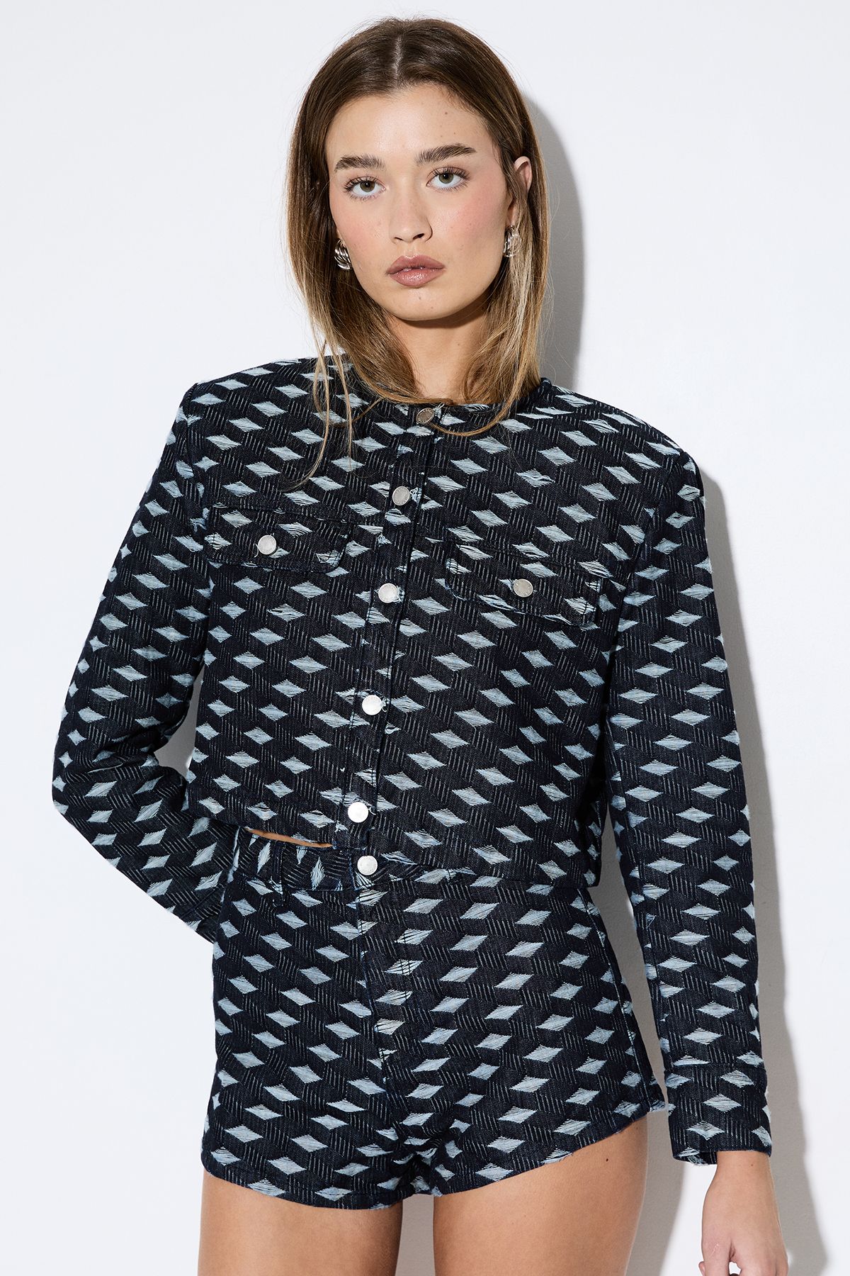 MissPap Premium Denim Diamond Textured Denim Trucker Jacket Indigo