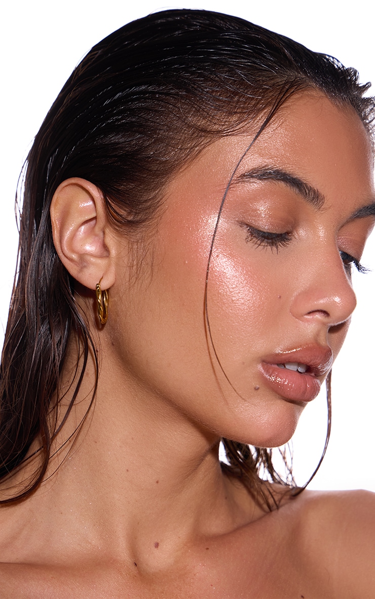 Gold Water Resistant Triple Layered Twist Hoop Earrings