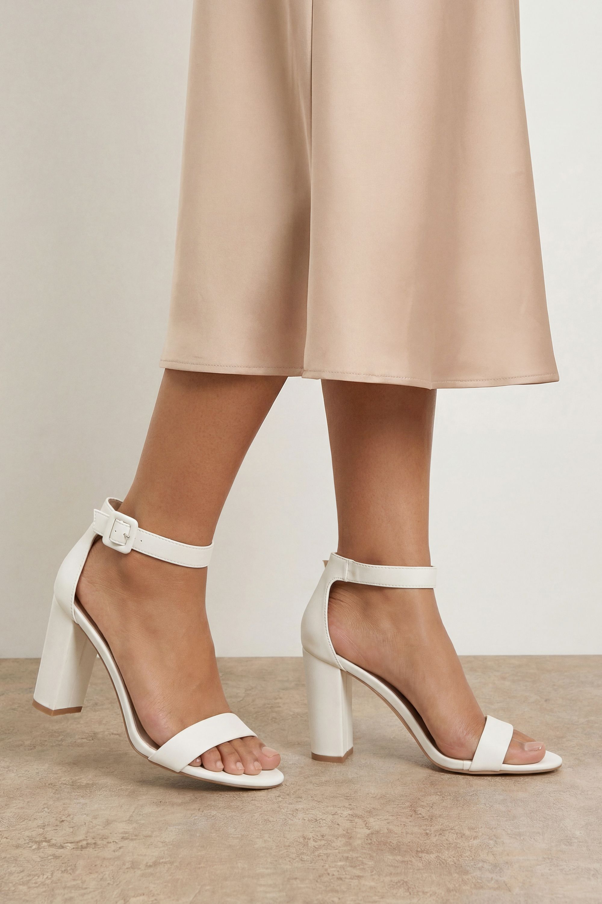 Oasis Milla Covered Buckle High Block Heel Sandals White